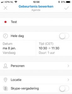 Het bekijken van de agenda planning van kamers is via de app helaas nog niet optimaal. Het is wachten of dat Microsoft hier nog iets in gaat aanpassen zodat je ook vooraf al de beschikbaarheid kan zien.