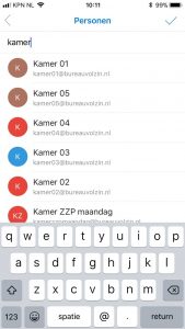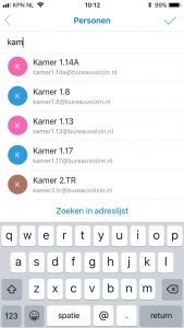 Staat de juiste kamer er niet bij ? Druk dan op zoeken in adreslijst en probeer het nogmaals.
