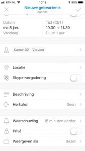 en klik op het + teken bovenin om een nieuwe afspraak te maken